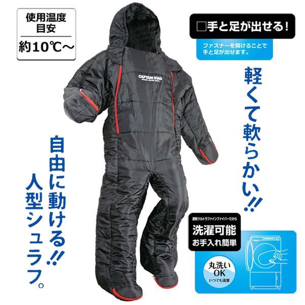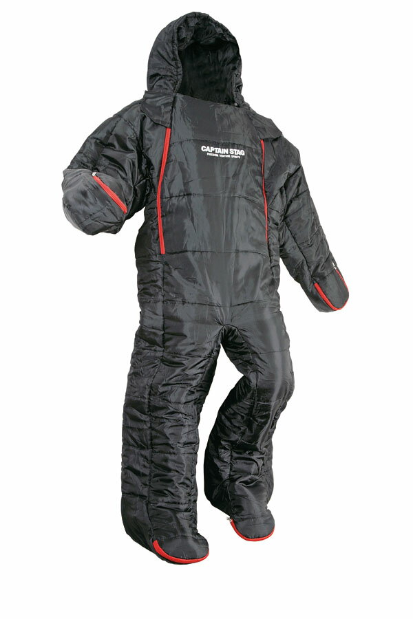 アウトドア シュラフ 防災 家 動ける【キャプテンスタッグ 洗える人間型シュラフ180(ブラック×レッド)】