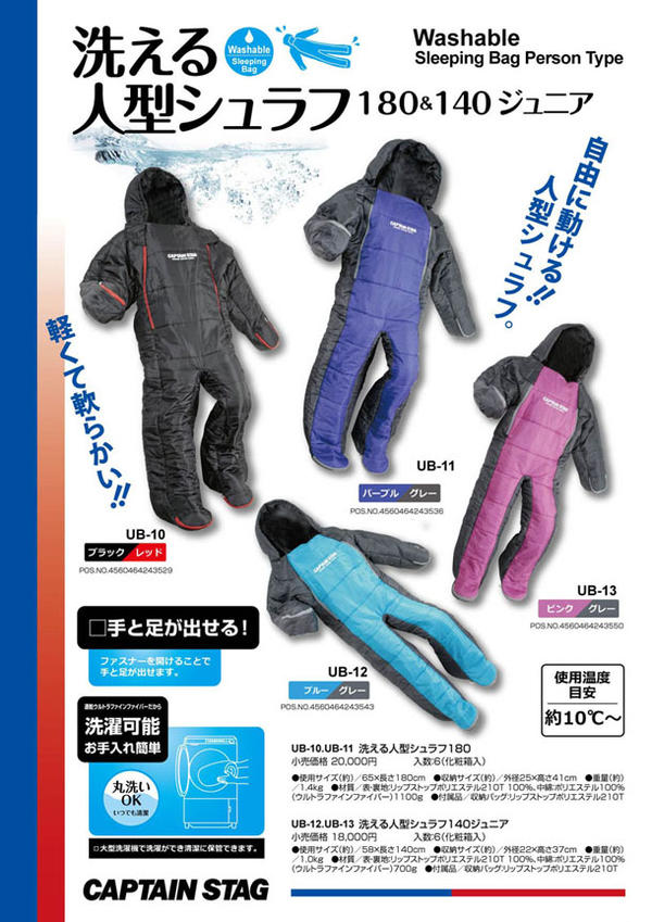 洗える人型シュラフ(寝袋)140 ジュニア UB-0012/UB-0013 ブルーxグレー/ピンクxグレー 【条件付送料無料】 キャプテンスタッグ/アウトドア用品・キャンプ用品/UB-12/UB-13 ※廃番予定品